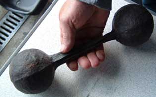 An example of an iron barshot as would have been used to to bring down the mast of a Galleon.