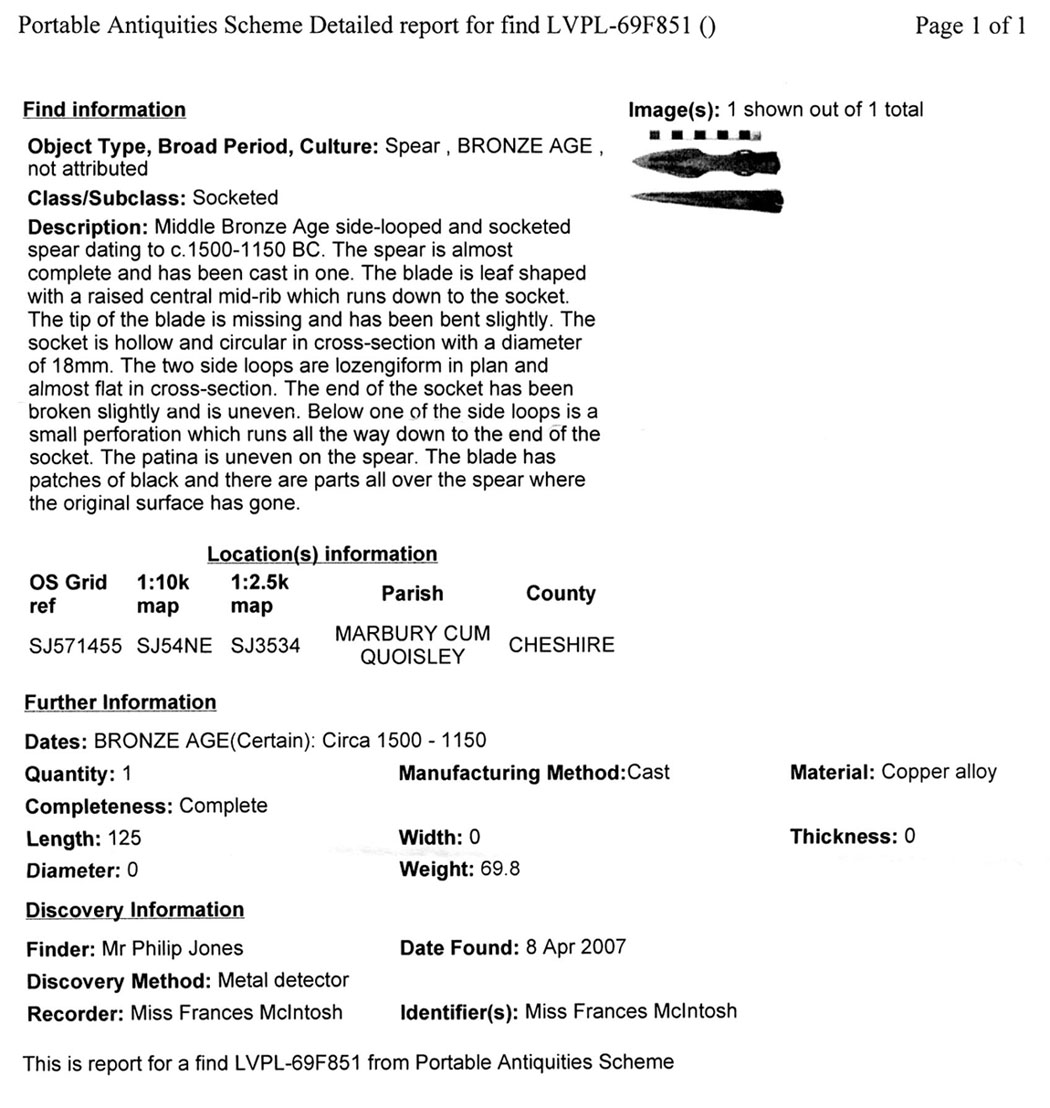 Portable Antiquities Report for Spear. CLICK ON IMAGE FOR READABLE VIEW.